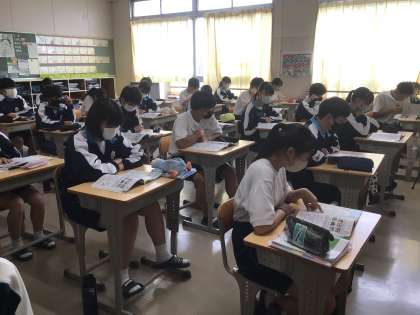 3年生の保健体育科の授業の様子です。健康を守るための社会のしくみについて学習をしていました。来週から始まる期末テストにも出題されるようです。