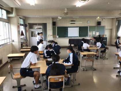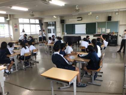 2年生の学級活動の様子です。このクラスは、リフレッシュするために、学級でレクリエーションをしていました。イントロクイズで仲間と楽しい時間を過ごしていました。