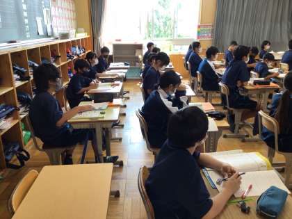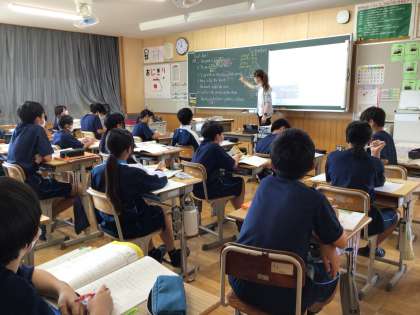 1年生の英語科の授業の様子です。液晶プロジェクターを活用して、授業を進めていました。