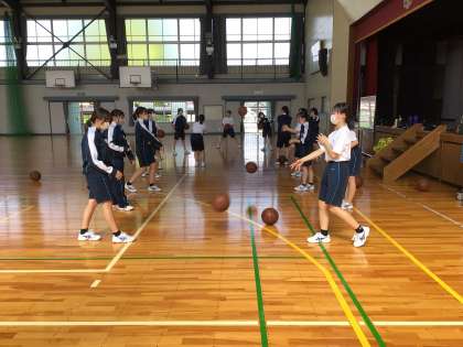 3年生の保健体育科の授業の様子です。先日まで、沖縄にてワールドカップが開催されたこともあり、前向きにバスケットボールへ取り組んでいました。