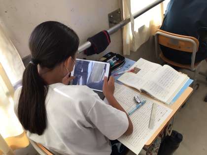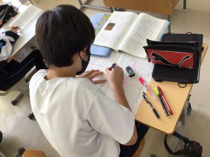 3年生の国語科の授業の様子です。「おくのほそ道」を現代語にする中で、古典の言葉のもつ「良さ」について考えていました。
