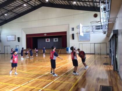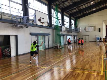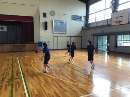 1年生の保健体育科の授業の様子です。バスケットボールに取り組んでいました。各グループに分かれて練習していました。