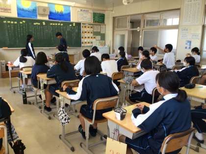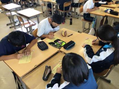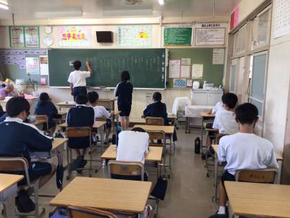 2年生の学級活動の様子です。10月の目標を話し合っていました。10月には「楽猿祭」が予定されています。それに向けての目標を話し合っているクラスもありました。生徒が会の進行を務め、互いに考えを伝え合う中で、集団としてめざす方向を決めていくという、自治的な活動にも取り組んでいます。