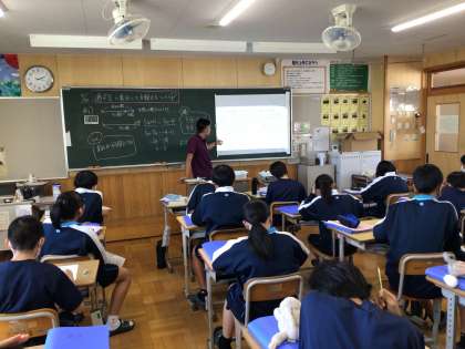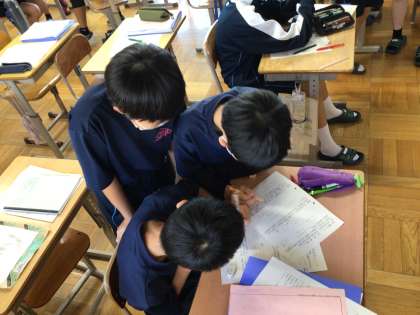 1年生の数学科の授業の様子です。過不足に着目して方程式に表してから問題を解いていました。仲間どうしで教え合う場面がありました。積極的に教え合う姿が見られました。本校の良い姿の一つです。