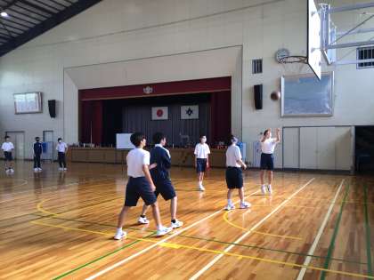 3年生の保健体育科の授業の様子です。バスケットボールに取り組んでいました。9月下旬ですが、まだ暑い日が続き、少し運動するだけで汗をかくような状況ですが、生徒は積極的に取り組んでいました。