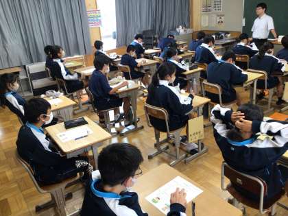 1年生の英語科の授業の様子です。週に一回、単語のテストをしています。
