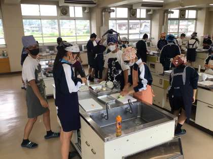 2年生の家庭科の授業の様子です。「ミネストローネ」を調理していました。