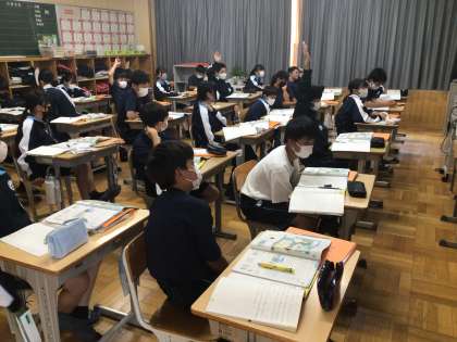 1年生の英語科の授業の様子です。三人称単数現在形について学習していました。少しずつ学習する内容が難しくなっています。しっかりと復習することが大切です。