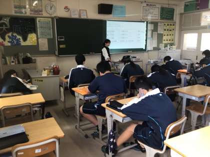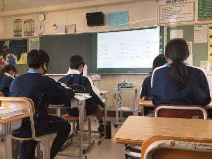 2年生の英語科の授業の様子です。電車の運行状況の聞き取りをしていました。生活場面で使える内容も授業で取り上げています。