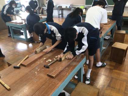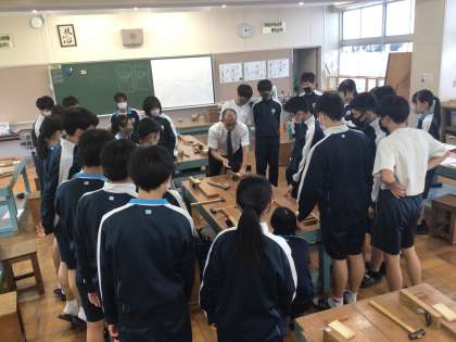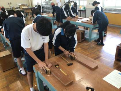 3年生の技術科の授業の様子です。かんながけに取り組んでいました。授業者が実際にかけ方を見せていました。