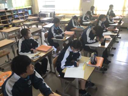 2年生の英語科の授業の様子です。2年生は、少人数で授業を進めています。1クラスを2つに分けて指導するため、より生徒の理解の状況に合わせて授業を実施しています。英語科担当者は、授業の内容について、互いに相談しながら取り組んでいます。