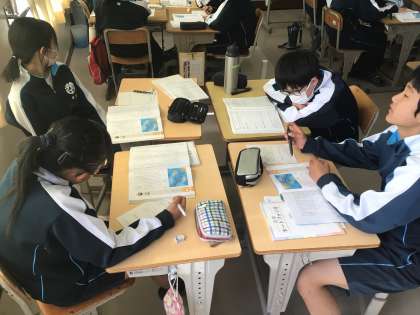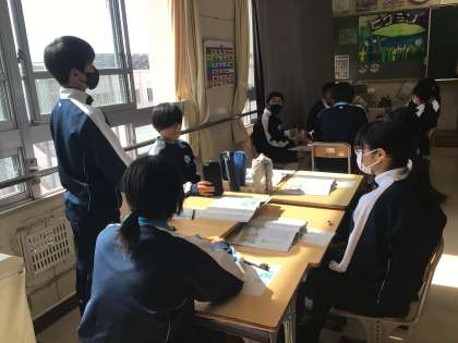 2年生の道徳科の授業の様子です。真の友情とはどんなものなのかを考えるために、「ライバル」という教材を活用して授業を進めていました。ライバルと切磋琢磨していた仲間が入院し、ライバルがいなくなり、自分が1番になれるかもという気持ちと、そんなことを考えた自分が許せないという気持ちとが揺れ動く中で、ライバルのお見舞いに向かう彼。生徒は、この教材からさまざまなことを考えていました。