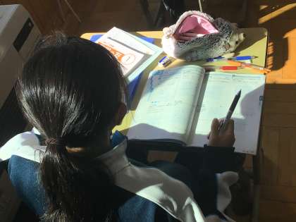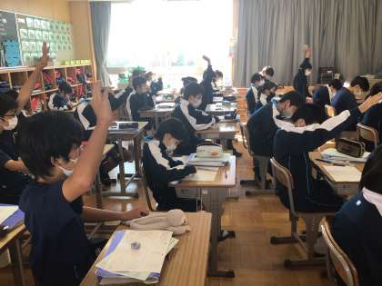 1年生の数学科の授業の様子です。比例について学習しています。点の位置を座標で表す方法を学んでいました。