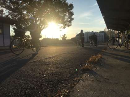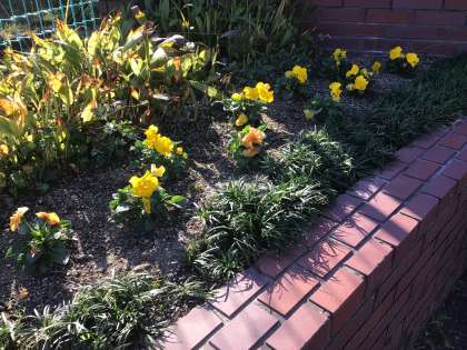 清掃を終えた生徒が下校していました。東門の花壇には、きれいな花を咲かせたパンジーが生徒を温かく見守っていました。