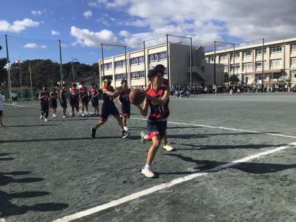 今年の生徒会競遊は2つあります。一つめの「部活動対抗リレー」です。