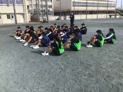 1年生の保健体育科の授業の様子です。アルティメットに取り組んでいました。