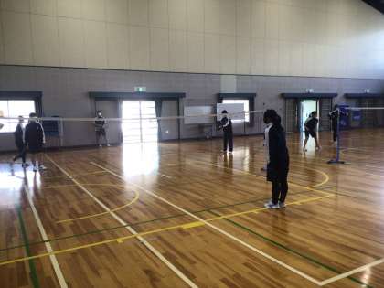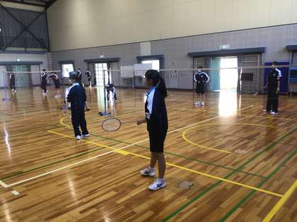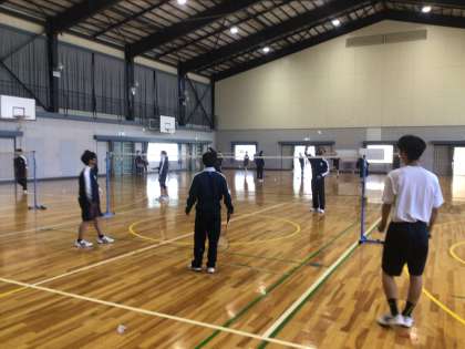 3年生の保健体育科の授業の様子です。バドミントンに取り組んでいました。シャトルを打ち返すことがなかなか思うようにできないようでした。