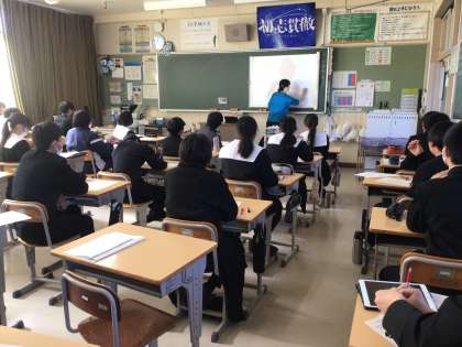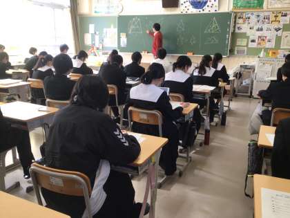 3年生の授業の様子です。後期中間テストが返却されています。問題の解説をしていました。