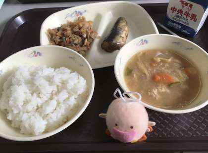 今日の給食の献立は、「かぜを予防する食事」です。ちゃんこ汁があります。「ちゃんこ」とは、相撲部屋で料理をつくる当番のことを「ちゃんこ番」といい、ちゃんこ番が作る料理を「ちゃんこ」と呼びます。「ちゃんこ」は、力士の大きく強いからだをつくるために栄養満点に考えられています。