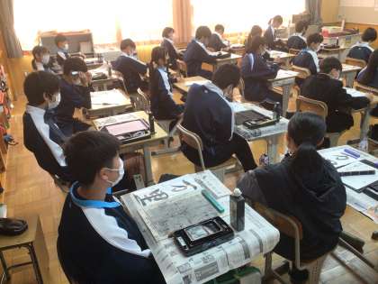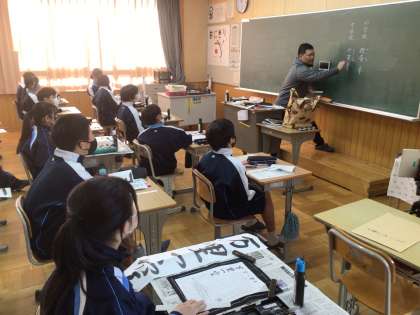 1年生の国語科の授業の様子です。書き初めの練習に取り組んでいました。