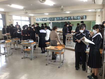 3年生の音楽科の授業の様子です。「花の街」という曲を取り上げていました。この歌は、終戦まもない頃に作られ、教科書にも長く掲載されているものです。