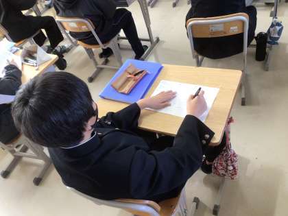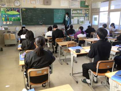 2年生の数学科の授業の様子です。図形の証明について学習していました。液晶プロジェクターを活用して、数学科の授業は進められています。