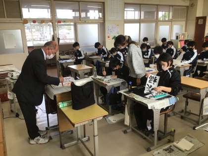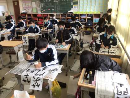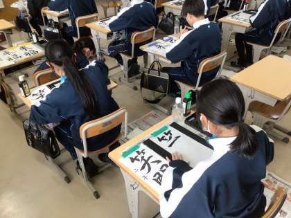 2年生の国語科の授業の様子です。書写指導の講師の方が教えてくださいました。2年生は、「笑門来福」と書いています。「笑門来福」の語源は「笑う門には福来る」という日本のことわざだそうです。今年も残すところあと3週間ほどとなりました。新年を笑顔で迎えたいものですね。