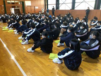 2年生の学年集会の様子です。2年生として、心がけてほしいことや仲間を大切にすることの大切さが話されていました。今週木曜日から自然教室が始まります。学年のスローガンである「一丸」を意識して、有意義な行事となるように願っています。