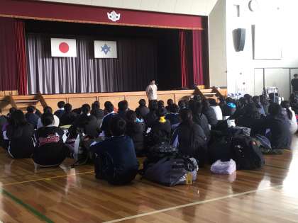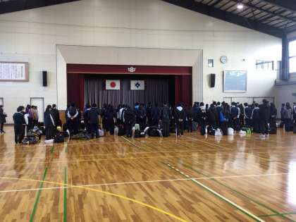 2年生が自然教室から帰ってきました。体育館での帰着式の様子です。