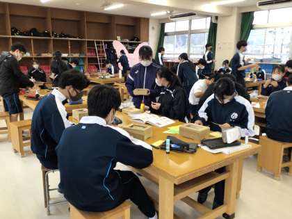 3年生の美術科の授業の様子です。卒業制作の木箱づくりも完成に近づいてきました。