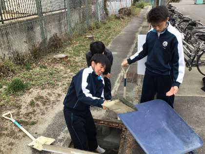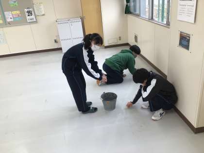 3年生が今まで使ってきた校舎の清掃に取り組んでいました。通常の清掃活動ではできないことを、時間をかけて取り組んでいました。