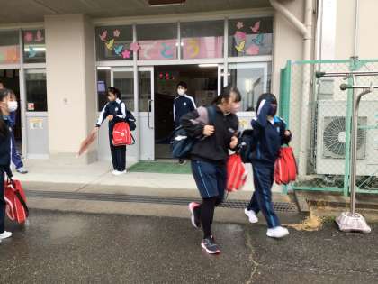 2年生は明日の卒業証書授与式の会場準備をしました。今、すべてが完了して下校を始めました。