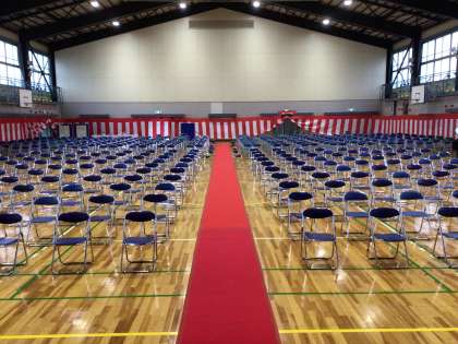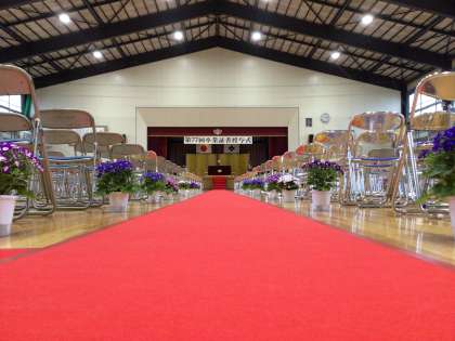 会場の様子です。3年生の皆さん、交通安全に気をつけて登校してください。