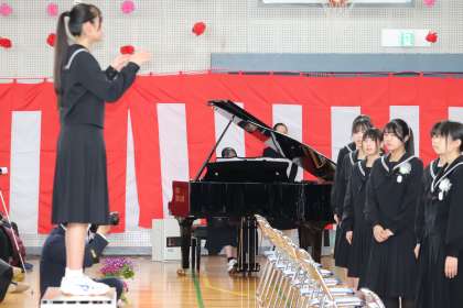 短い期間でしたが、合唱にも取り組んでいました。みなさんにふさわしい歌でした。また、卒業の言葉では、飾らない言葉に心動かされました。