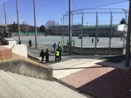 2年生が学年レクリエーションをしていました。運動場を使って元気に走っていました。