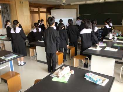 1年生の理科の授業の様子です。映像を使ってクイズを楽しんでいました。