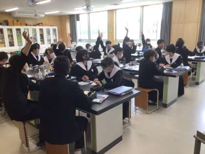 3年生の理科の授業の様子です。力の大きさについて学習していました。