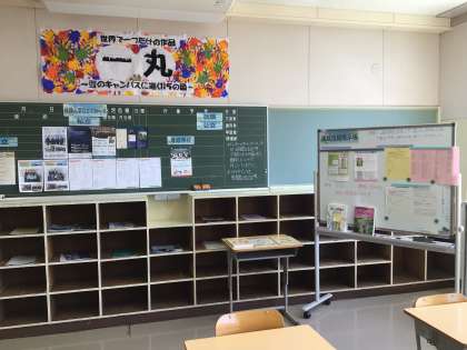 3年2組と3組の教室の間に、今年度は談話室が設けられています。その教室の中には、進路関係の情報も掲示してあります。生徒が休み時間に活用しています。