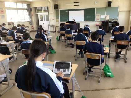 2年生の音楽科の授業の様子です。学習用タブレットを活用して、演奏していました。