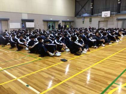 生徒会による「新入生歓迎会」が始まりました。1年生入場の様子です。