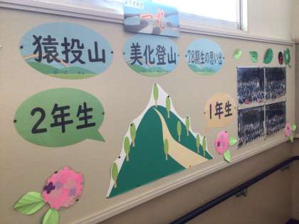 5/10(金)に行われた「猿投山美化登山活動」について掲示されていました。3年生にとっては、3回目の活動であるため、1,2年生の頃の様子も掲示してあり、3年間を振り返ることができるように工夫されていました。