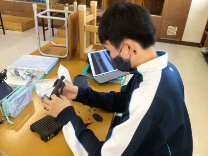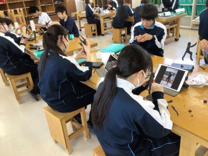 3年生の美術科の授業の様子です。動きのある像を制作していました。あらかじめ、学習用タブレットで参考となる動きを写真に撮り、その写真を見ながら取り組んでいました。