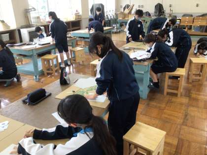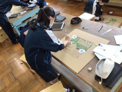 1年生の技術科の授業の様子です。段ボールをパーツごとに切り分ける作業をしていました。