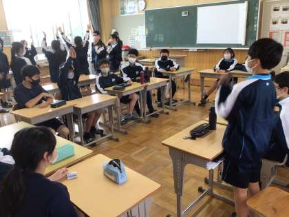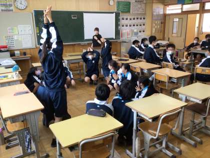 1年生の学級活動の様子です。クラスの仲間とレクリエーションを楽しんでいました。入学して、約2か月。仲間の良さがわかり始めた頃だと思います。互いを思いやる心を大切にしてほしいと願っています。