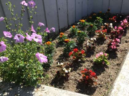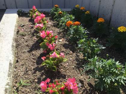 西門横の花壇の様子です。公務手さんに手入れしていただいています。来校される方の心を和ませていただいています。