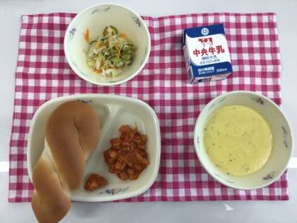 今週は、歯と口の健康週間です。今日の献立は、歯を健康にする献立でした。私たちの歯は、カルシウムからできています。カルシウムの含まれている食事をすると歯が丈夫になります。さらにカルシウムはお酢と組み合わせることで、吸収がよくなります。
