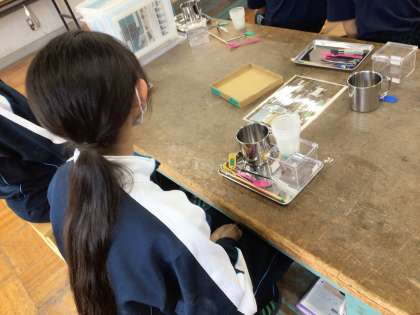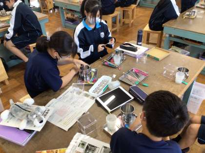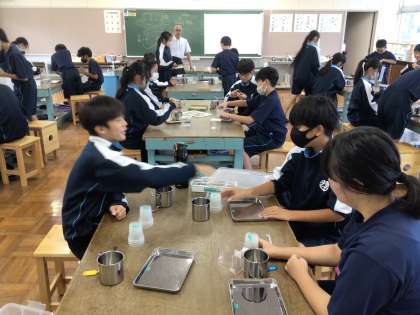 1年生の技術科の授業の様子です。命を育てるということで、工夫された教材を活用して学びます。