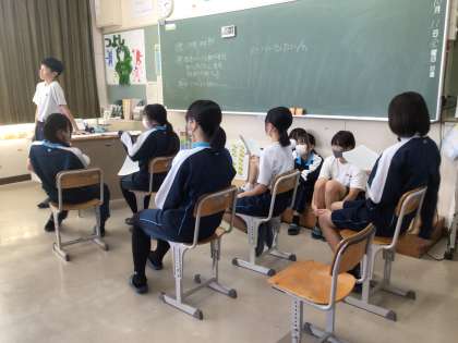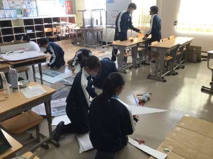 3年生の様子です。クラスでの発表の練習や小道具を作っていました。