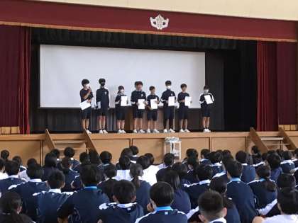 はじめに、後期生徒会役員の認証が行われました。後期生徒会長より、後期にかける意気込みが話されました。
