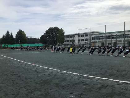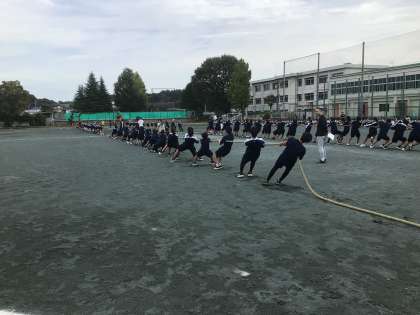 綱引きのリハーサルです。今日は、係の生徒の動きを確認するため、少しだけ競技をしていました。